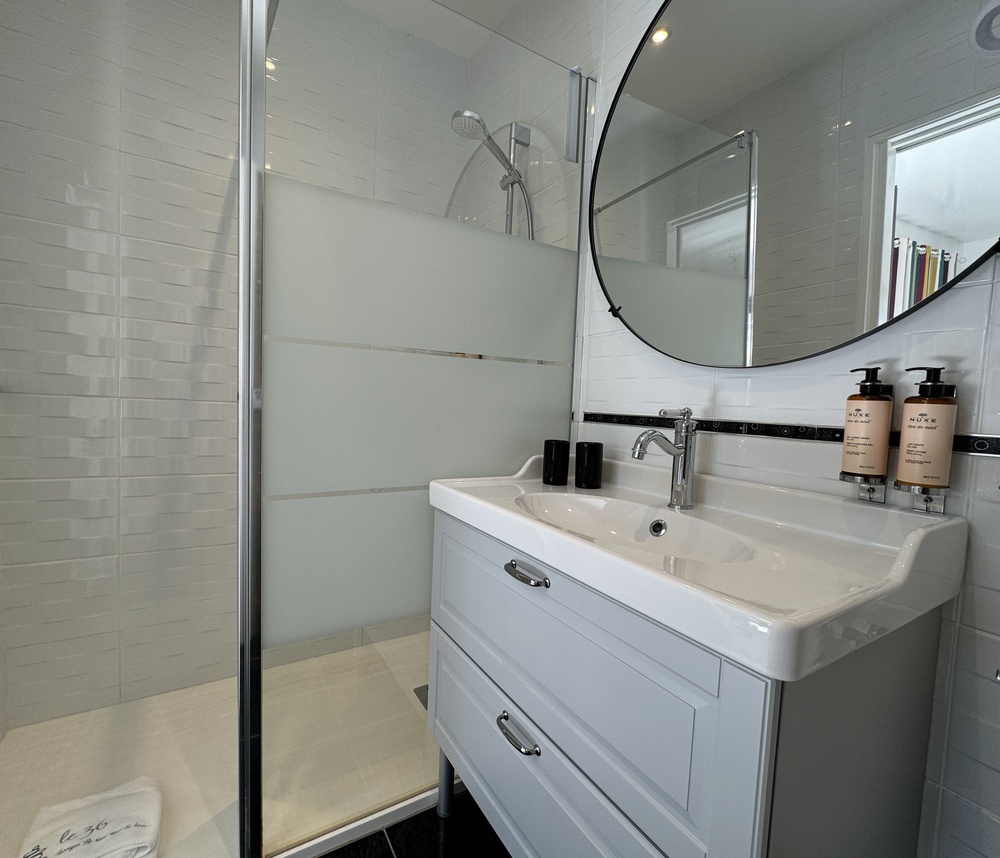 Une salle d’eau privée avec douche à l’italienne, WC sèche serviette électrique et sèche cheveux complètent l’ensemble.