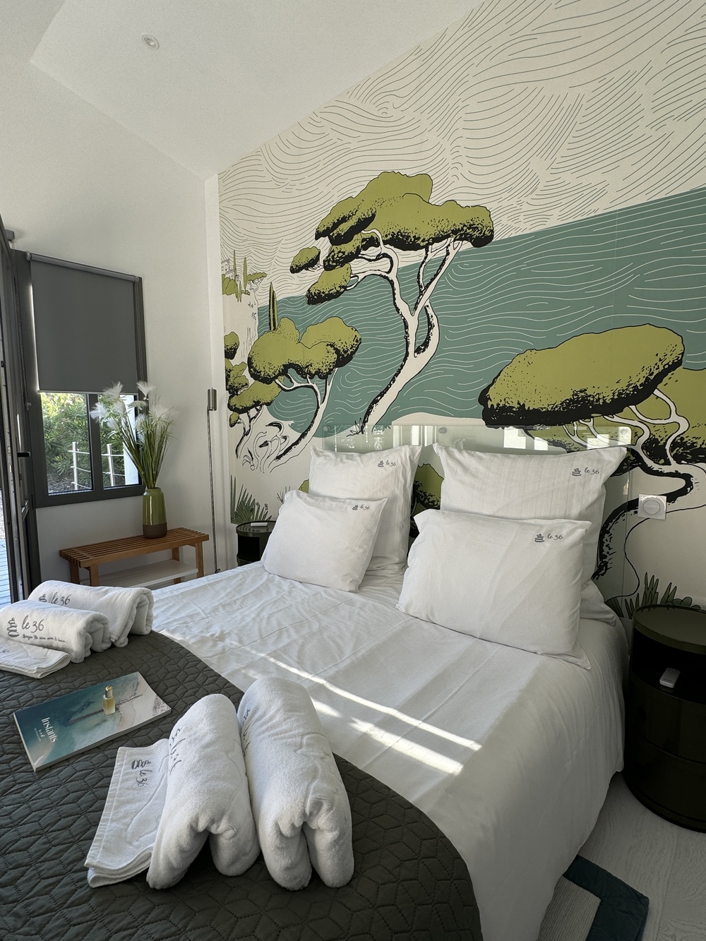 Draps et linge de toilette personnalisés Le 36, les soins Nuxe (corps et cheveux) vous sont fournis.